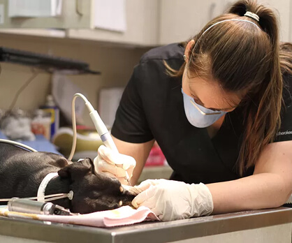 В первую очередь выполняется обычный осмотр ротовой полости животного для оценки состояния зуба и окружающих тканей. После этого вводится наркоз, чтобы обеспечить отсутствие боли во время процедуры.